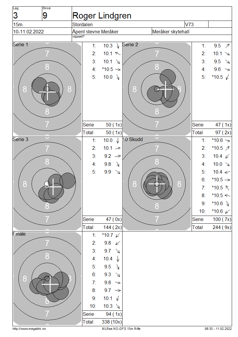 | 15 Skudd | 144 | 25 Skudd | 244 | 35 Skudd | 338 | ||||||||||||||||||||||||||||||||||||||||||