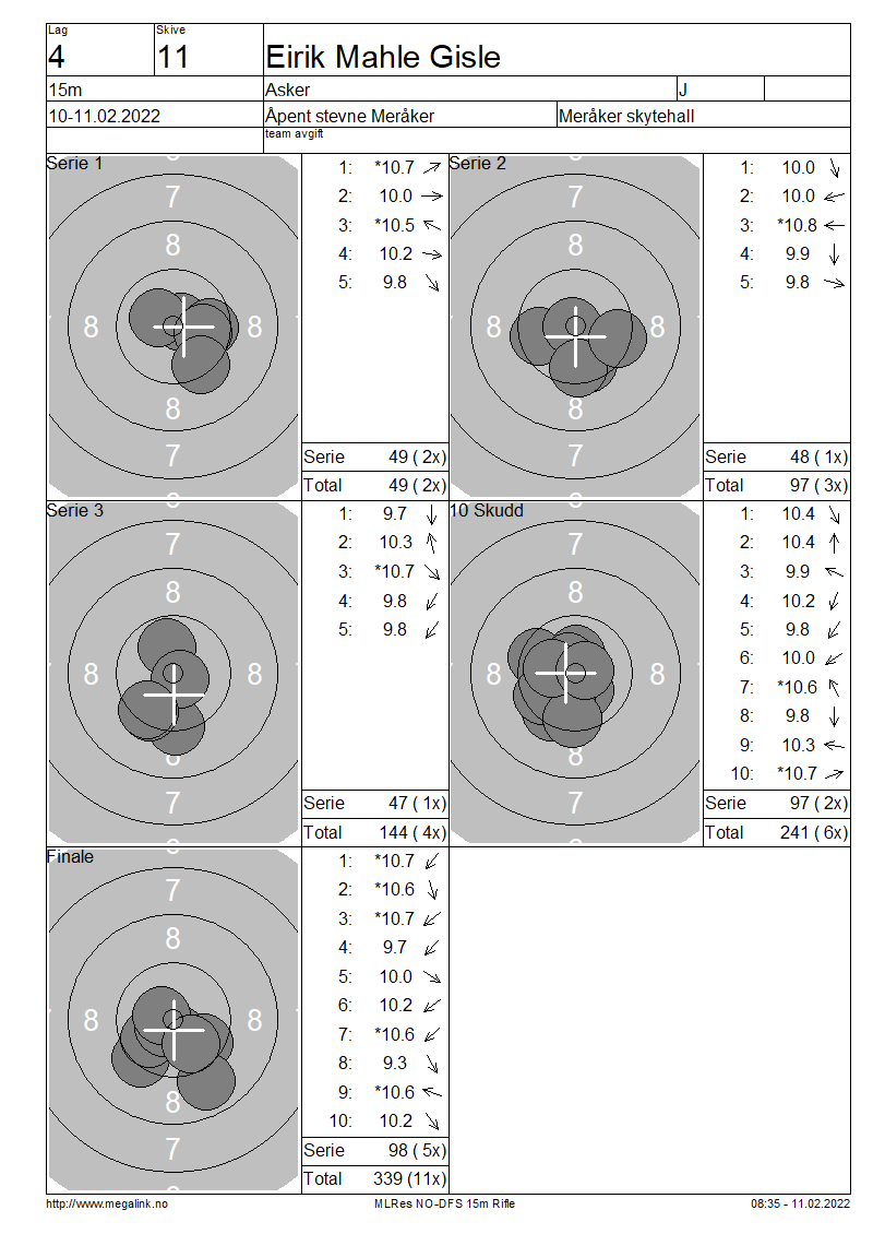 | 15 Skudd | 150 | 25 Skudd | 248 | 35 Skudd | 347 | ||||||||||||||||||||||||||||||||||||||||||
