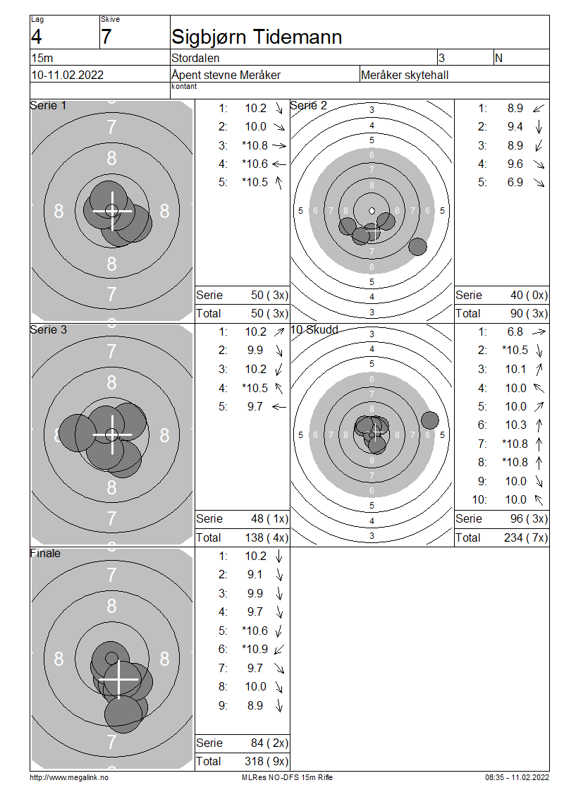 | 15 Skudd | 138 | 25 Skudd | 234 | 35 Skudd | 318 | ||||||||||||||||||||||||||||||||||||||||||