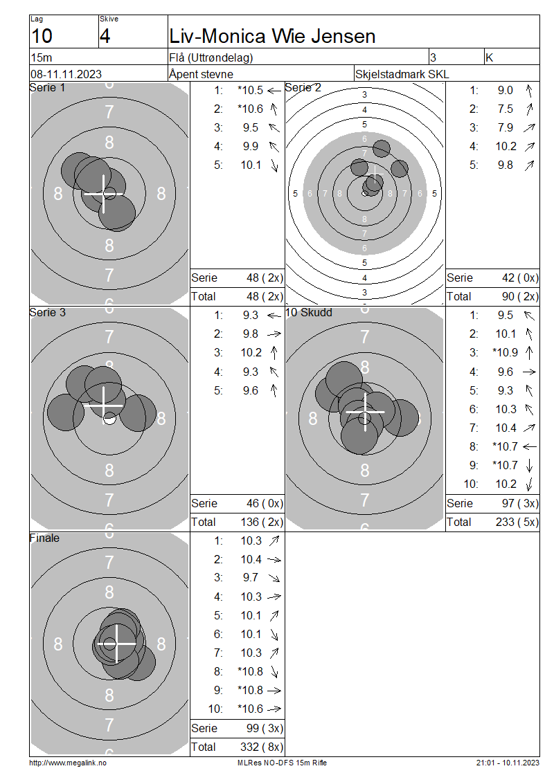 | 4 | 2448199 | Liv-Monica Wie Jensen | Flå (Uttrøndelag) | 3 | K | 332 | ||||||||||||||||||||||||||||||||||||||||||