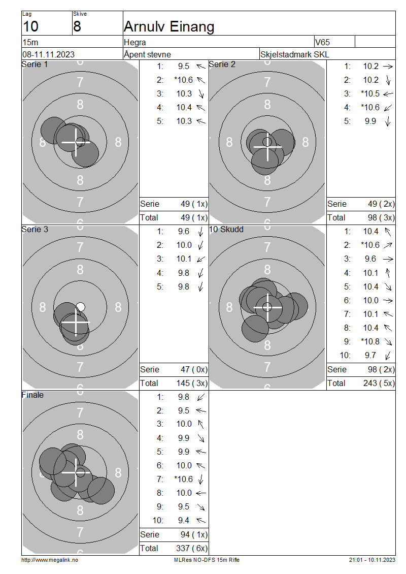 | 8 | 1444611 | Arnulv Einang | Hegra | V65 | 337 | |||||||||||||||||||||||||||||||||||||||||||