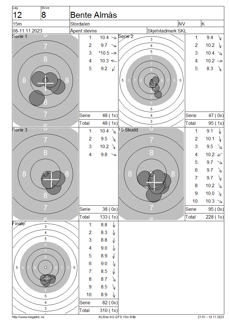 | 8 | 3153624 | Bente Almås | Stordalen | NV | K | 310 | ||||||||||||||||||||||||||||||||||||||||||
