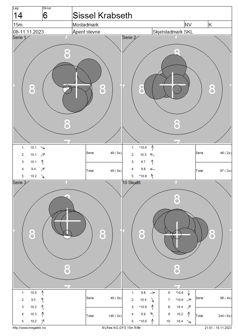 | 6 | 3107273 | Sissel Krabseth | Mostadmark | NV | K | 244 | ||||||||||||||||||||||||||||||||||||||||||