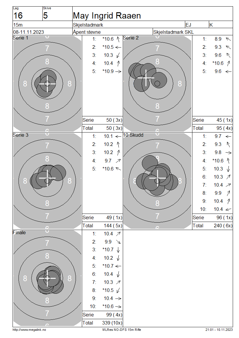 | 5 | 1058635 | May Ingrid Raaen | Skjelstadmark | EJ | K | 339 | ||||||||||||||||||||||||||||||||||||||||||