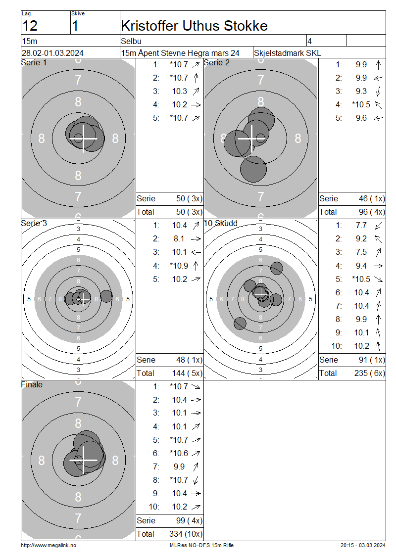 | 15 Skudd | 144 | 25 Skudd | 235 | 35 Skudd | 334 | ||||||||||||||||||||||||||||||||||||||||||