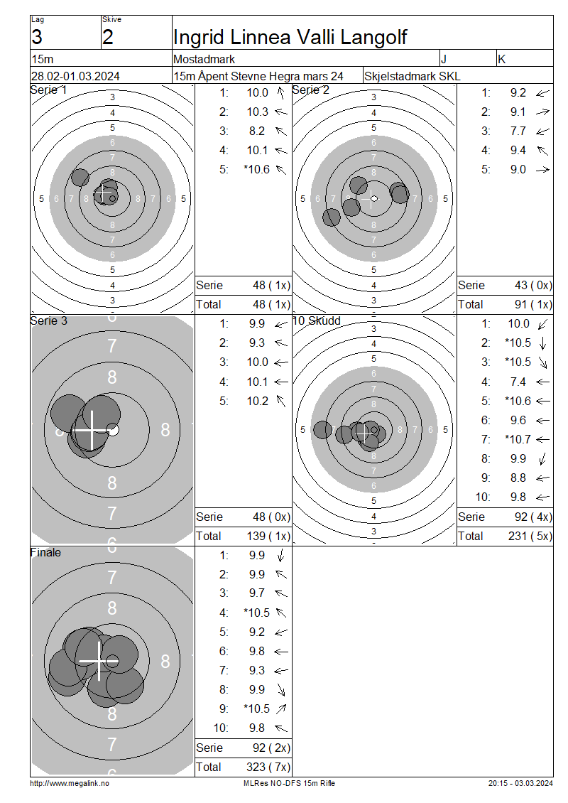 | 15 Skudd | 139 | 25 Skudd | 231 | 35 Skudd | 323 | ||||||||||||||||||||||||||||||||||||||||||