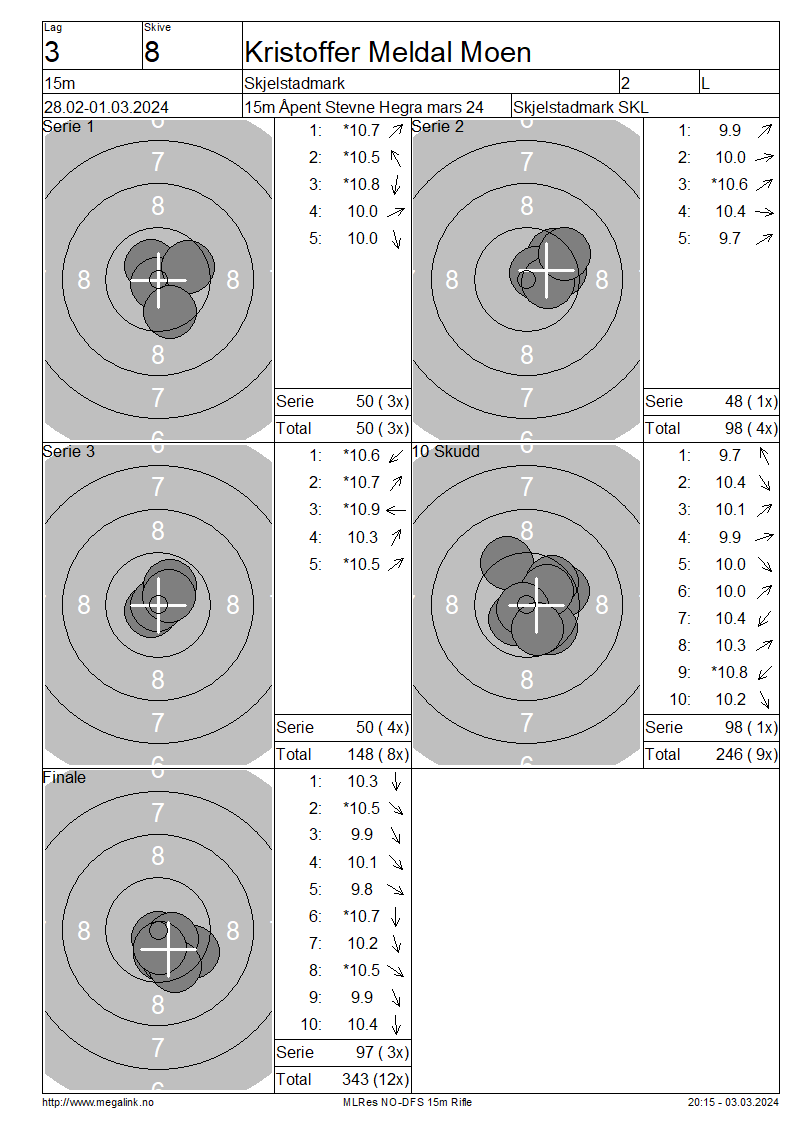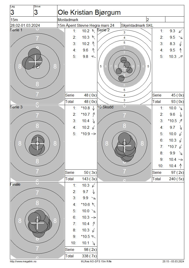 | 15 Skudd | 143 | 25 Skudd | 240 | 35 Skudd | 338 | ||||||||||||||||||||||||||||||||||||||||||