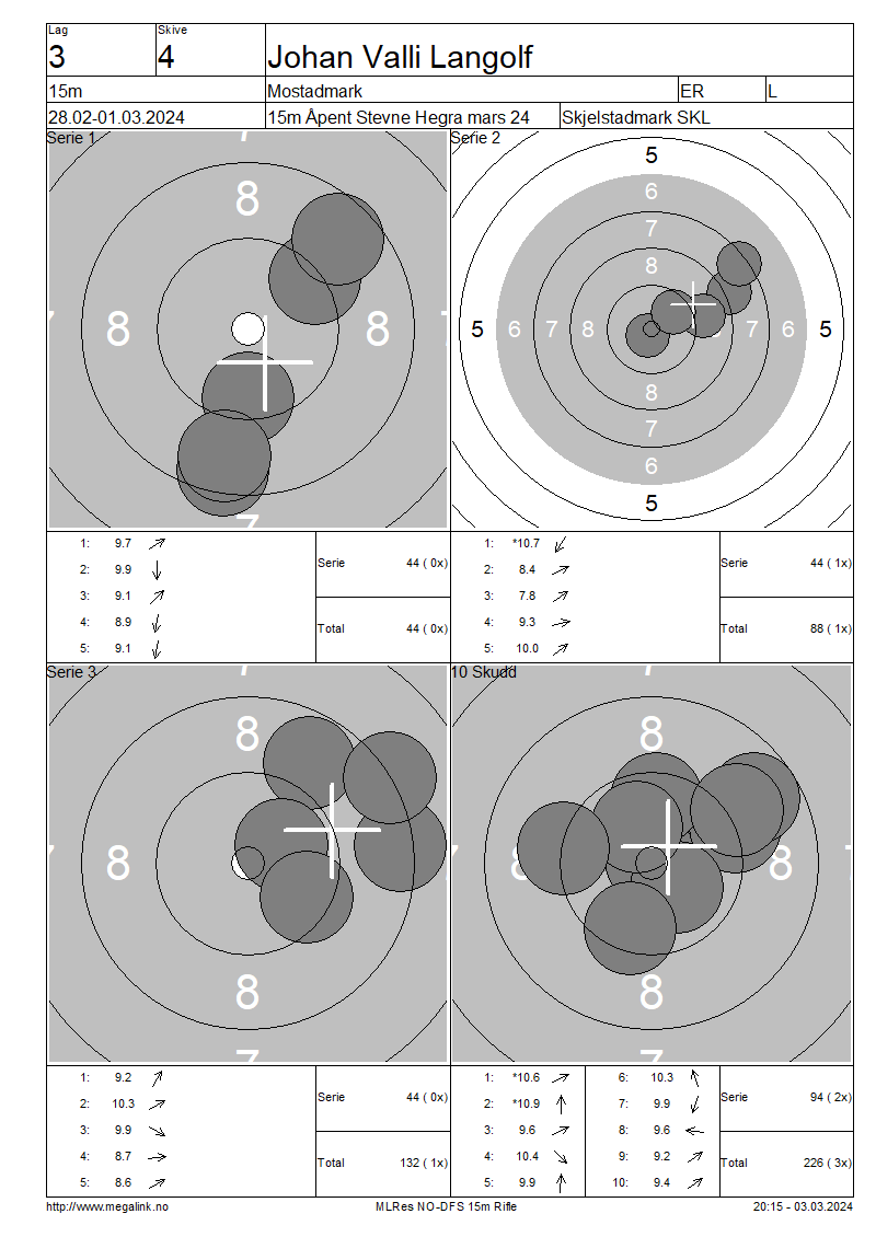 | 15 Skudd | 132 | 25 Skudd | 226 | 35 Skudd | 226 | ||||||||||||||||||||||||||||||||||||||||||