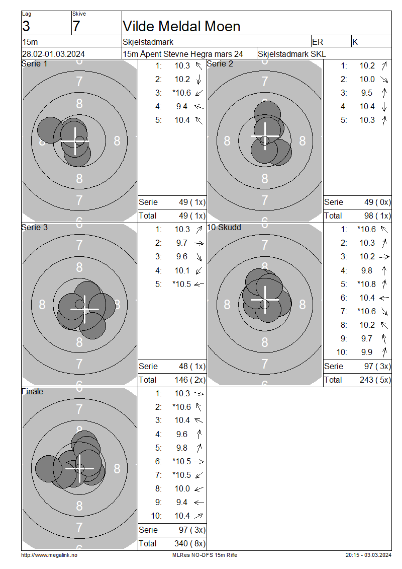 | 15 Skudd | 146 | 25 Skudd | 243 | 35 Skudd | 340 | ||||||||||||||||||||||||||||||||||||||||||