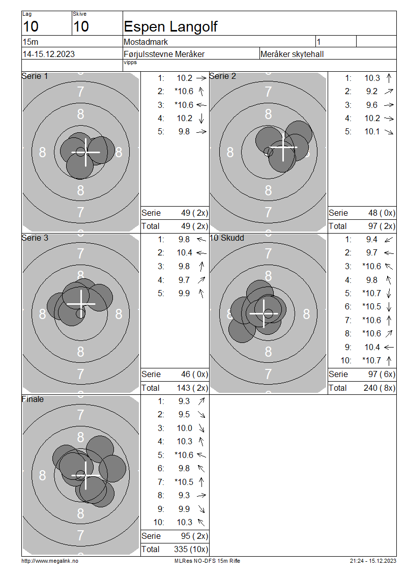 | 15 Skudd | 143 | 25 Skudd | 240 | 35 Skudd | 335 | ||||||||||||||||||||||||||||||||||||||||||