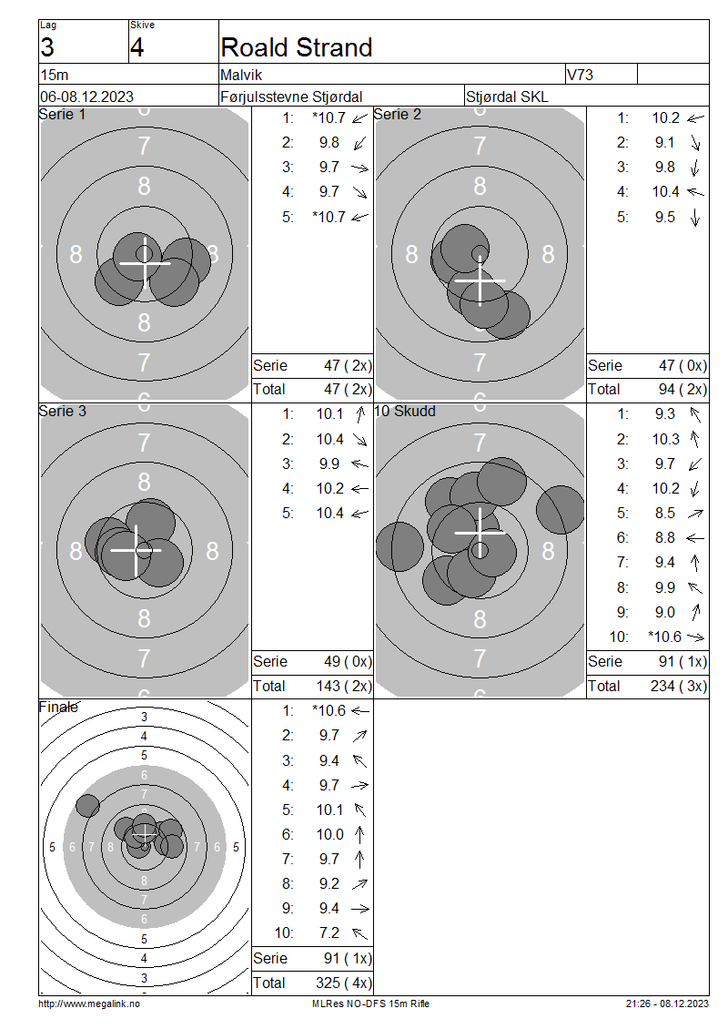 Resultater lag 3 15m