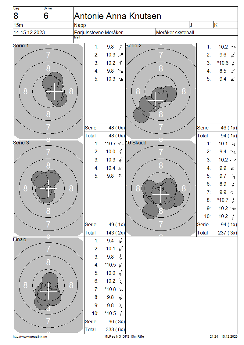 15 Skudd | 143 | 25 Skudd | 237 | 35 Skudd | 333 | ||||||||||||||||||||||||||||||||||||||||||