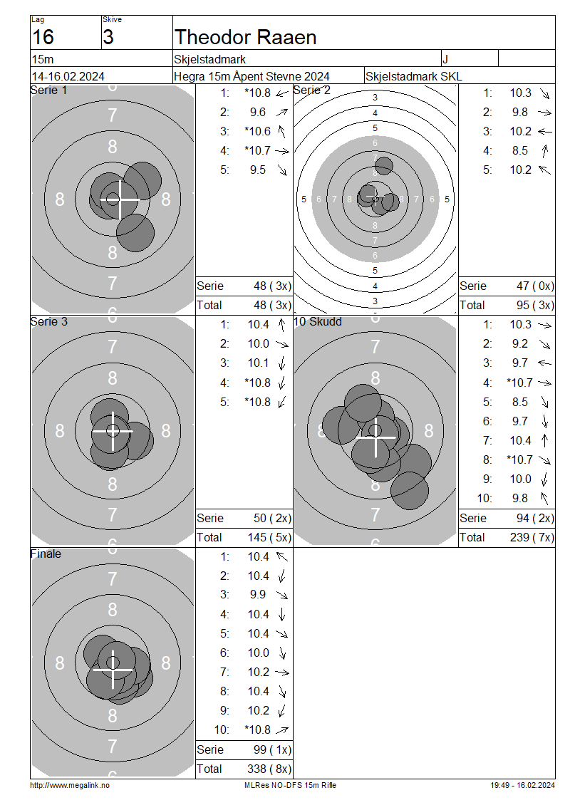 Resultater lag 16 15m