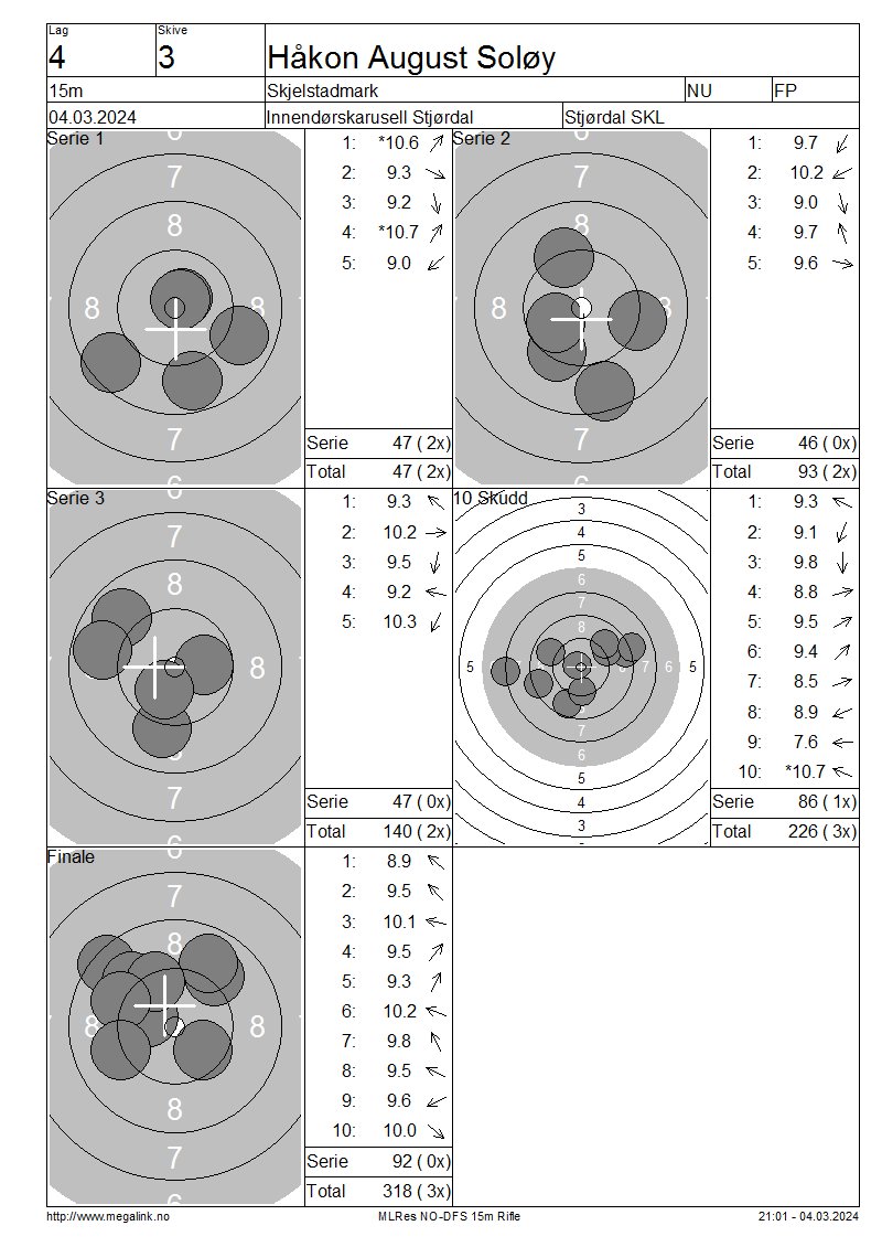 15 Skudd | 136 | 25 Skudd | 232 | 35 Skudd | 325 | ||||||||||||||||||||||||||||||||||||||||||