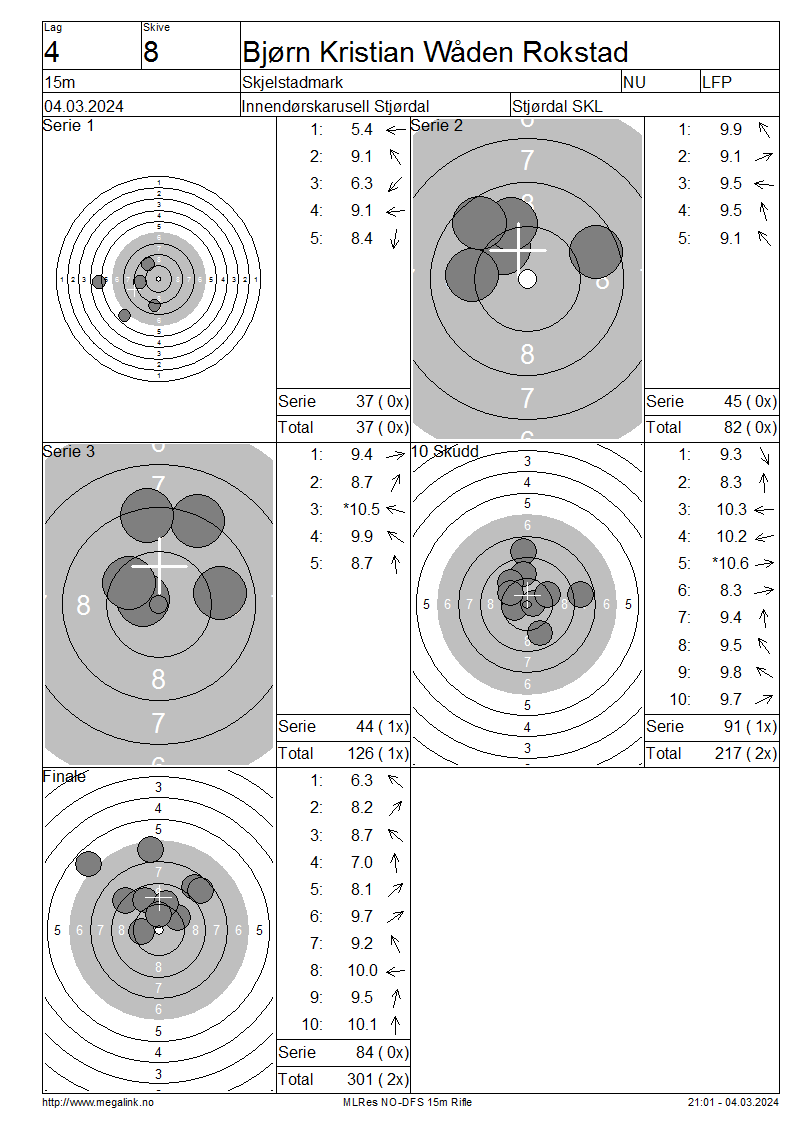 15 Skudd | 126 | 25 Skudd | 217 | 35 Skudd | 301 | ||||||||||||||||||||||||||||||||||||||||||