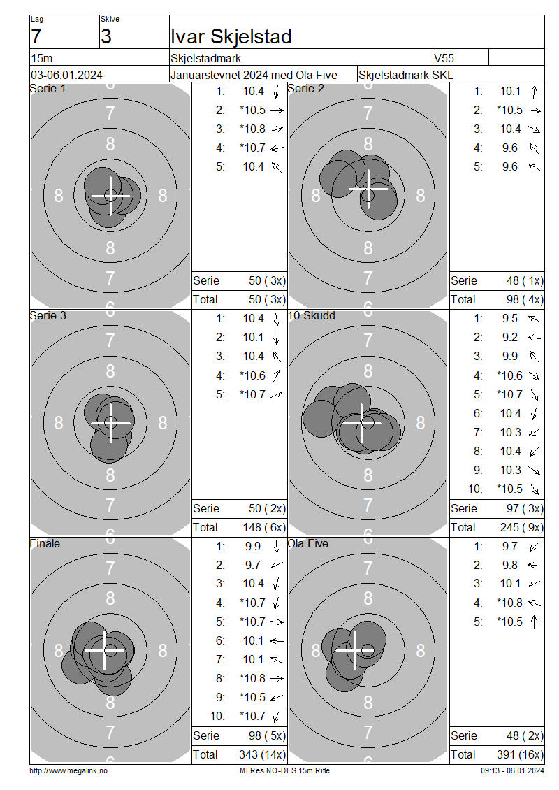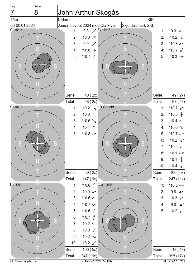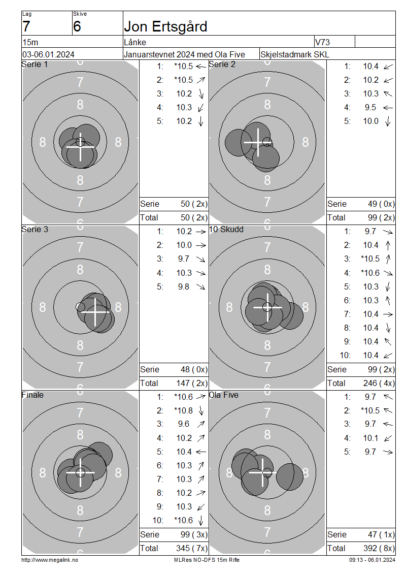 | 15 Skudd | 147 | 25 Skudd | 247 | 35 Skudd | 345 | ||||||||||||||||||||||||||||||||||||||||||
