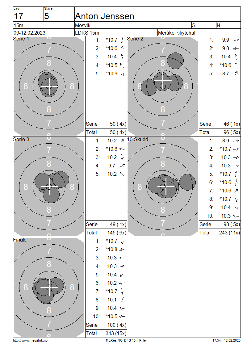| 15 Skudd | 145 | 25 Skudd | 243 | 35 Skudd | 343 | ||||||||||||||||||||||||||||||||||||||||||