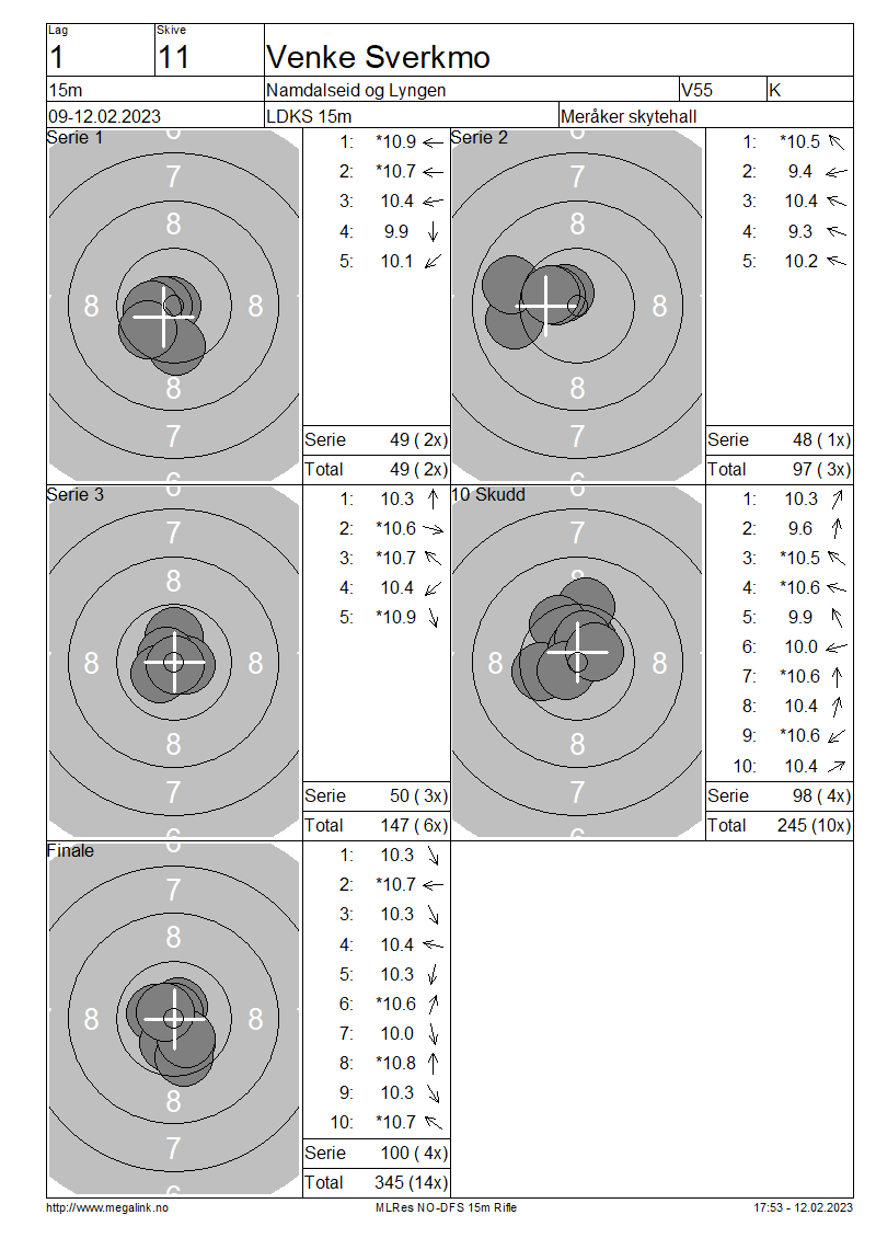 | 15 Skudd | 149 | 25 Skudd | 249 | 35 Skudd | 347 | ||||||||||||||||||||||||||||||||||||||||||