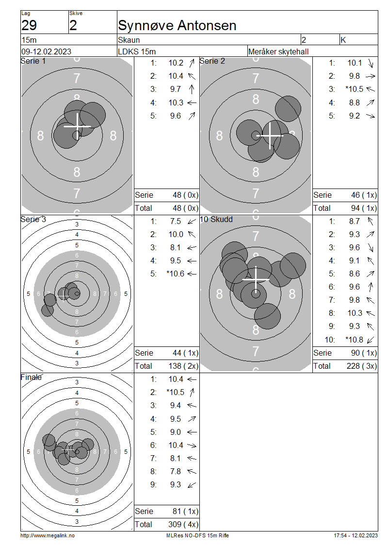15 Skudd | 138 | 25 Skudd | 228 | 35 Skudd | 309 | ||||||||||||||||||||||||||||||||||||||||||