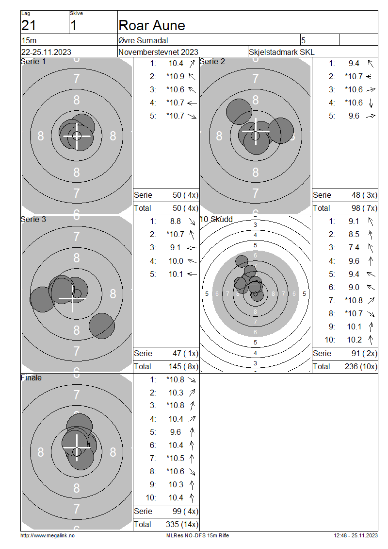 Resultater lag 21 15m