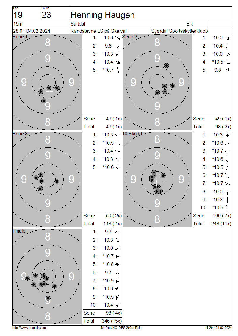 | 15 Skudd | 148 | 25 Skudd | 248 | 35 Skudd | 346 | ||||||||||||||||||||||||||||||||||||||||||