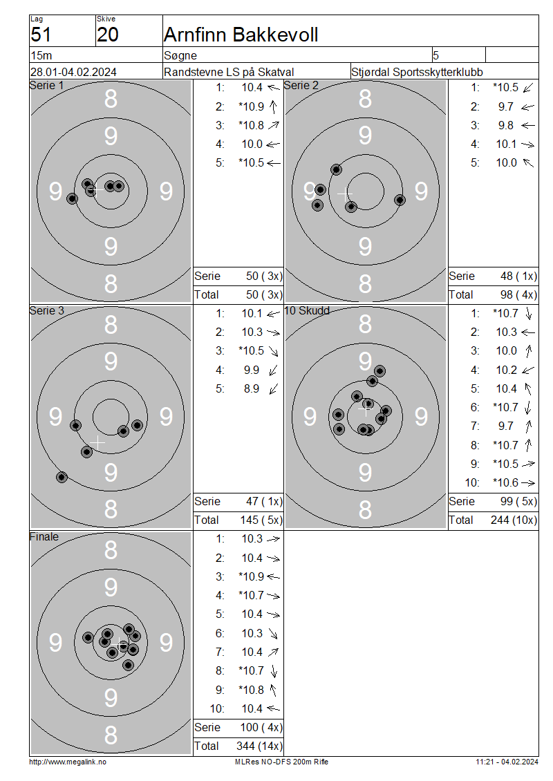 | 15 Skudd | 149 | 25 Skudd | 249 | 35 Skudd | 348 | ||||||||||||||||||||||||||||||||||||||||||