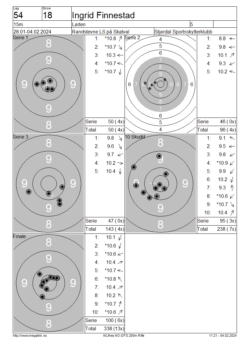 Resultater lag 54 15m