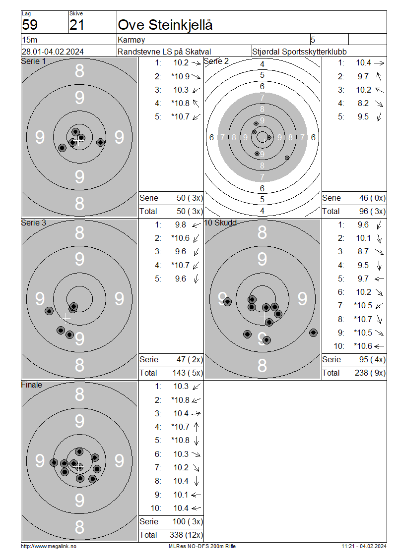 | 15 Skudd | 146 | 25 Skudd | 241 | 35 Skudd | 340 | ||||||||||||||||||||||||||||||||||||||||||