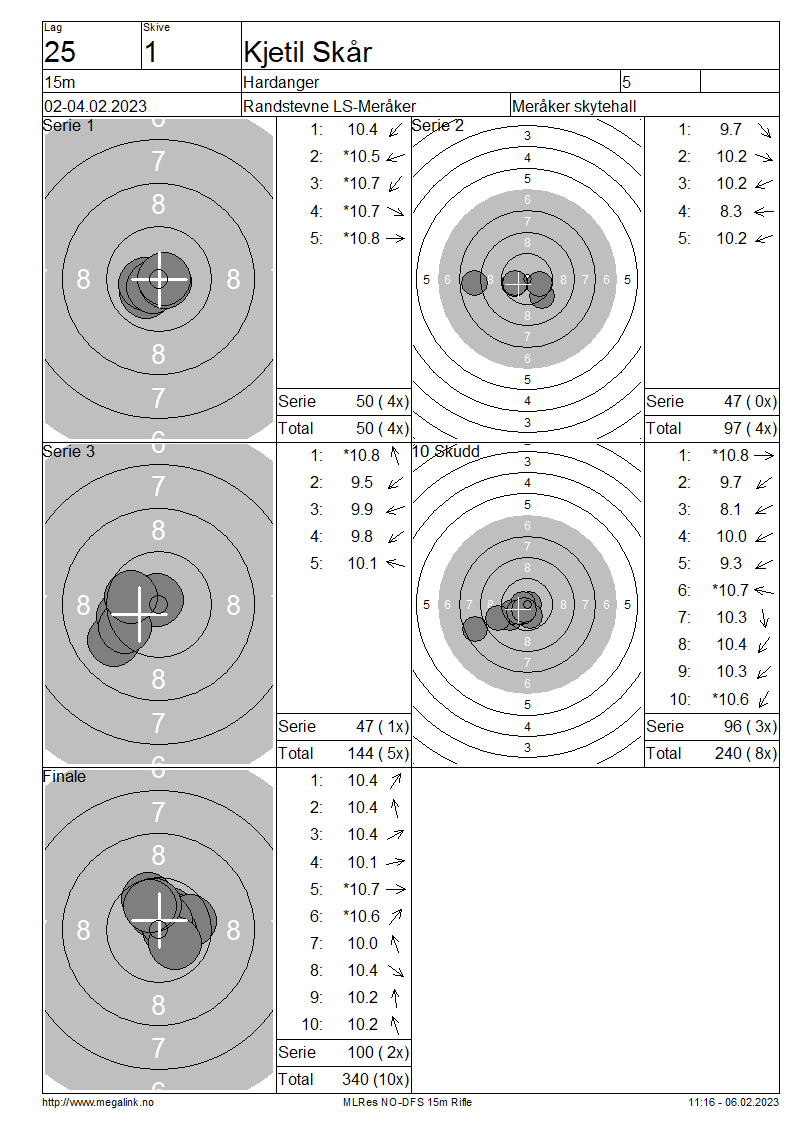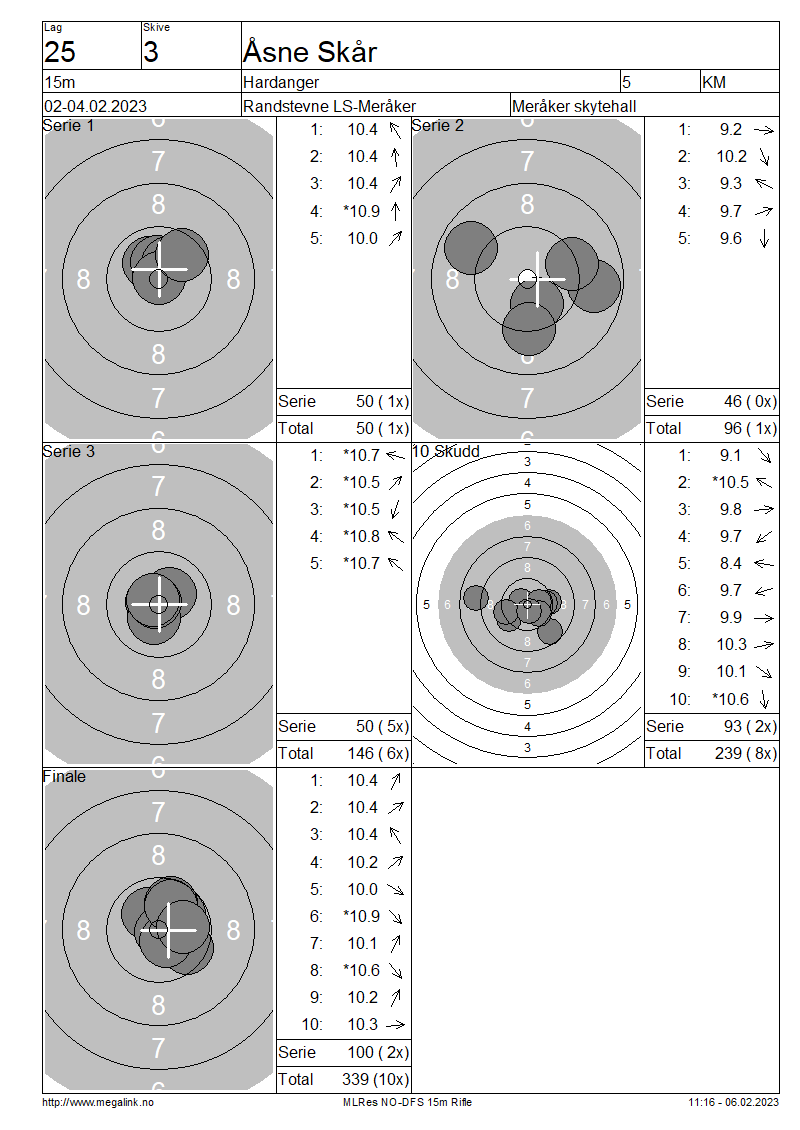 15 Skudd | 144 | 25 Skudd | 240 | 35 Skudd | 340 | ||||||||||||||||||||||||||||||||||||||||||