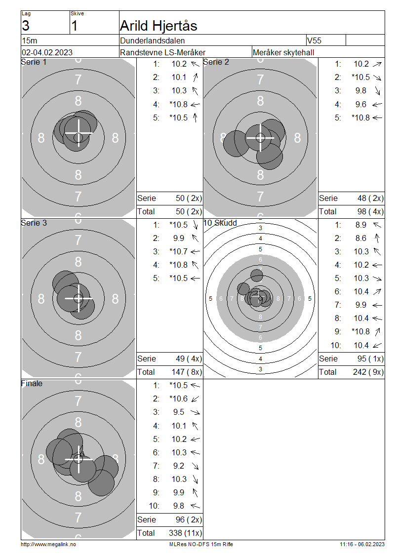 | 15 Skudd | 147 | 25 Skudd | 242 | 35 Skudd | 338 | ||||||||||||||||||||||||||||||||||||||||||