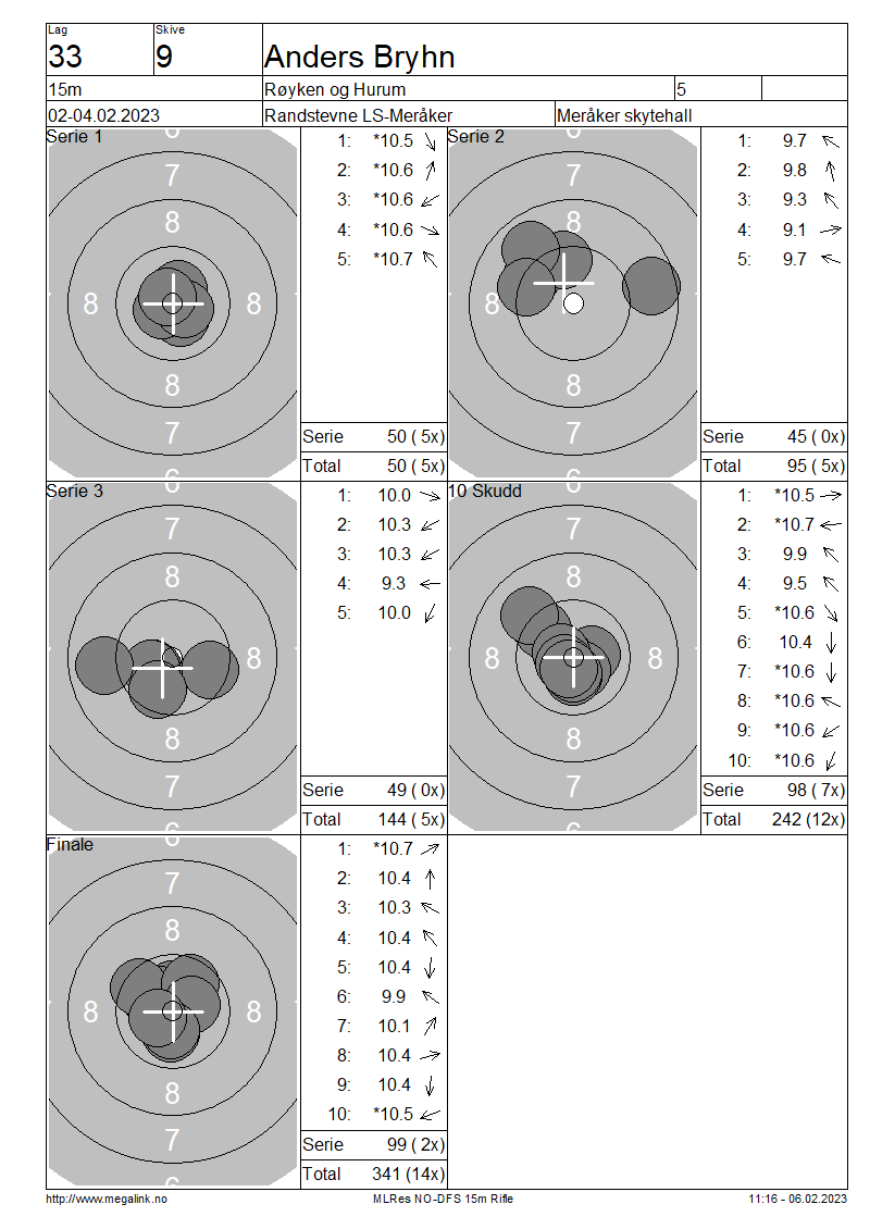 | 15 Skudd | 144 | 25 Skudd | 242 | 35 Skudd | 341 | ||||||||||||||||||||||||||||||||||||||||||