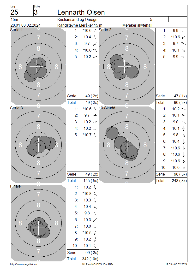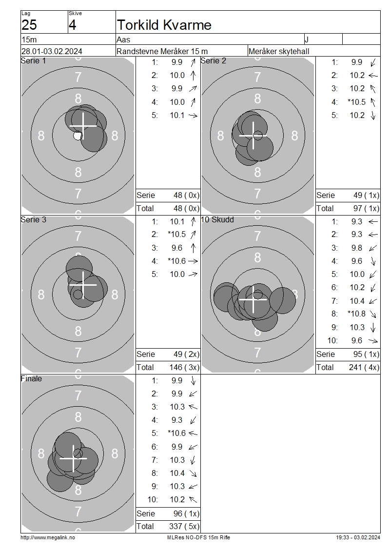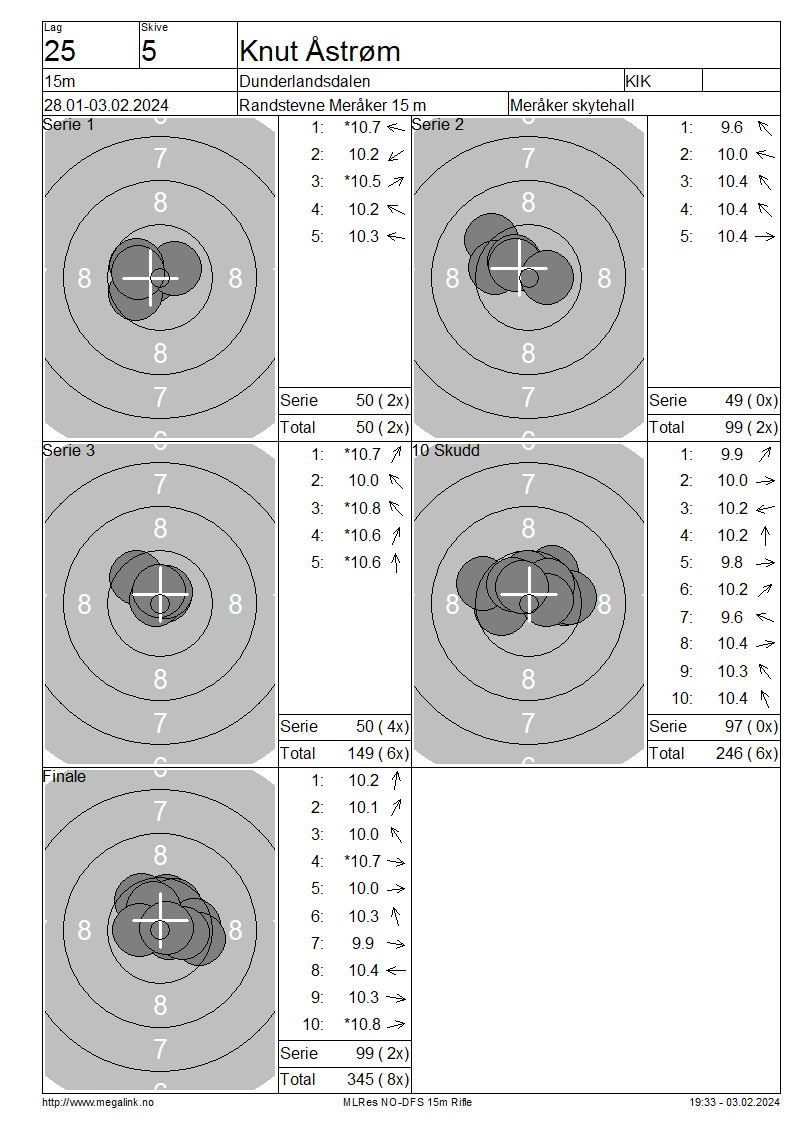 Resultater lag 25 15m