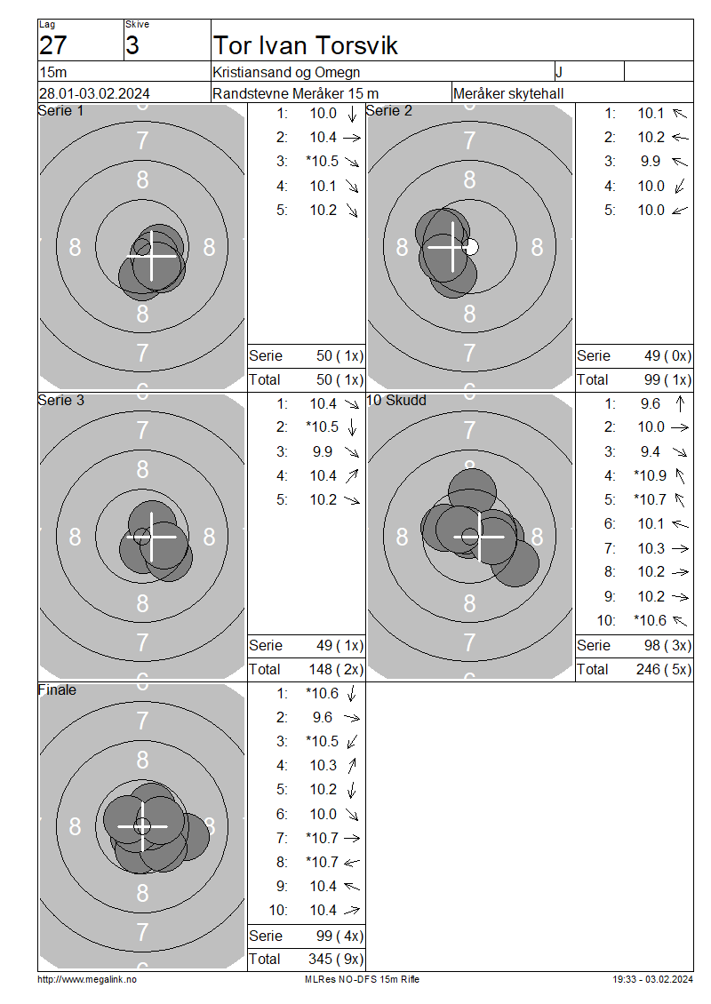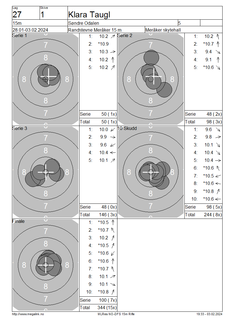 | 15 Skudd | 148 | 25 Skudd | 246 | 35 Skudd | 345 | ||||||||||||||||||||||||||||||||||||||||||