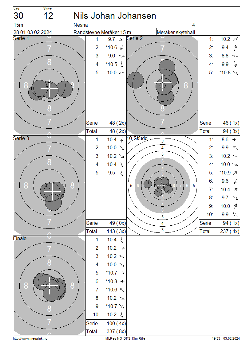 Resultater lag 30 15m