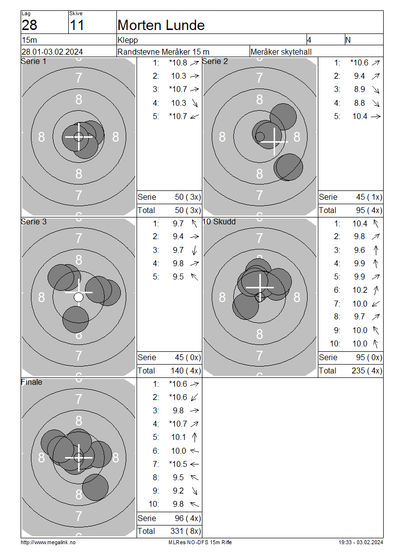 15 Skudd | 150 | 25 Skudd | 248 | 35 Skudd | 347 | ||||||||||||||||||||||||||||||||||||||||||