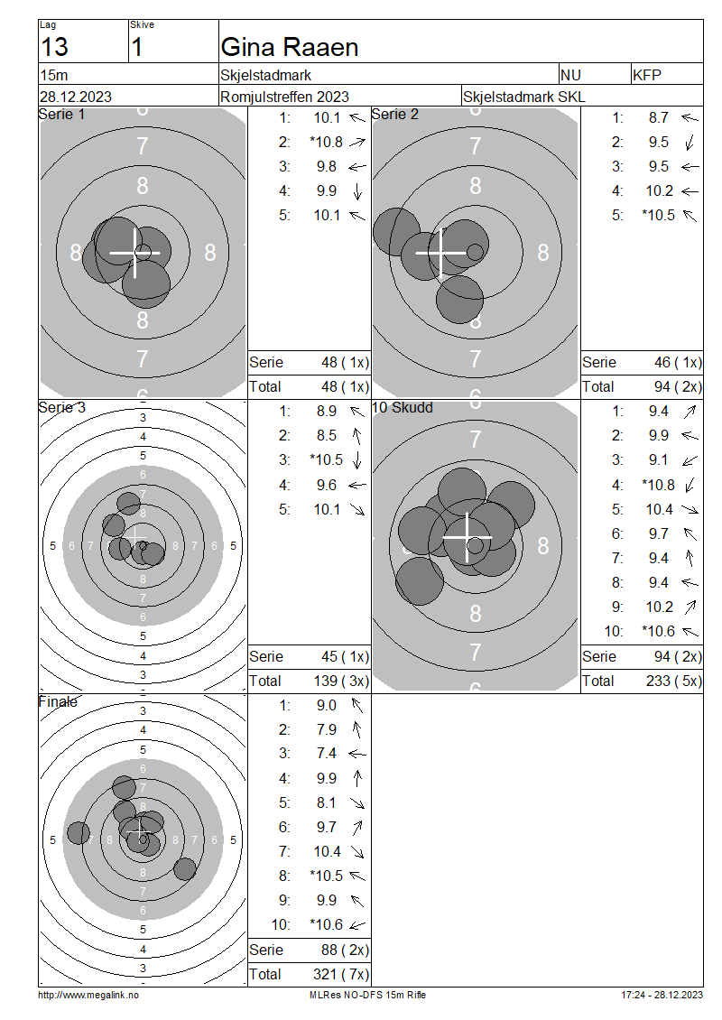 15 Skudd | 139 | 25 Skudd | 233 | 35 Skudd | 321 | ||||||||||||||||||||||||||||||||||||||||||