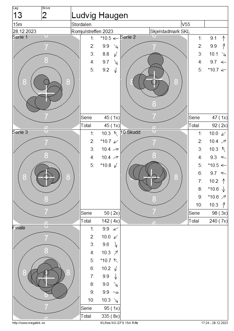 15 Skudd | 142 | 25 Skudd | 240 | 35 Skudd | 335 | ||||||||||||||||||||||||||||||||||||||||||