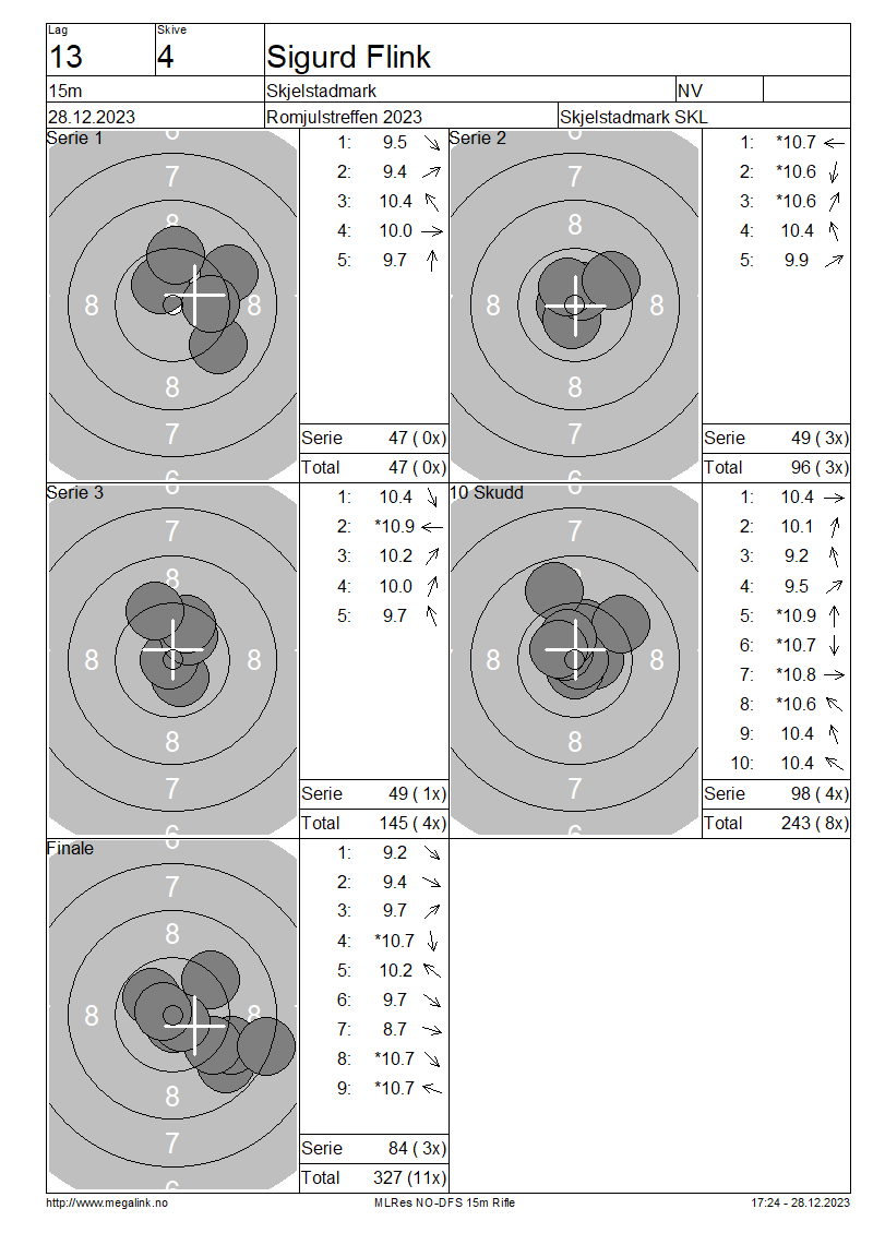 15 Skudd | 145 | 25 Skudd | 243 | 35 Skudd | 327 | ||||||||||||||||||||||||||||||||||||||||||
