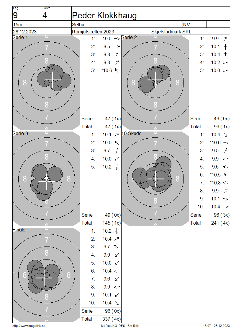 15 Skudd | 145 | 25 Skudd | 241 | 35 Skudd | 337 | ||||||||||||||||||||||||||||||||||||||||||