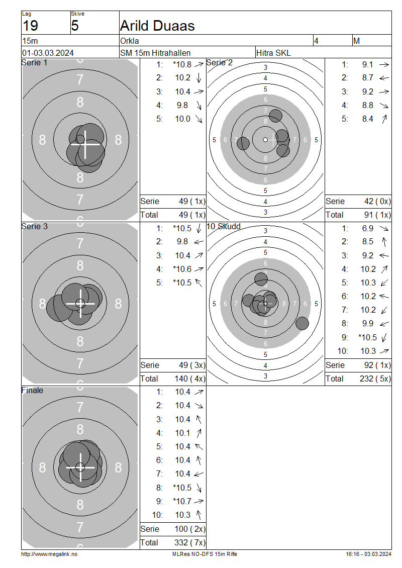 Resultater lag 19 15m