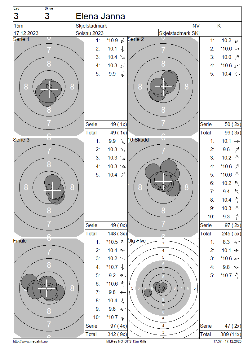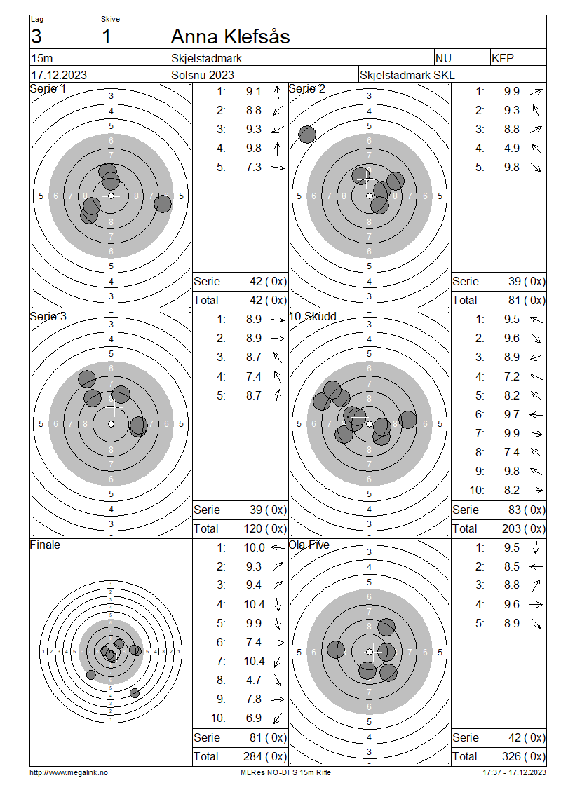 Resultater lag 3 15m