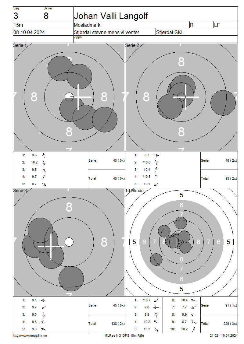 | 15 Skudd | 138 | 25 Skudd | 229 | 35 Skudd | 229 | ||||||||||||||||||||||||||||||||||||||||||