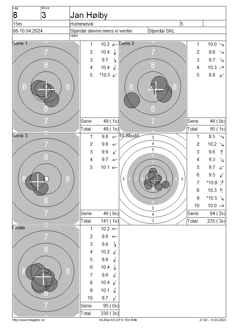 Resultater lag 8 15m