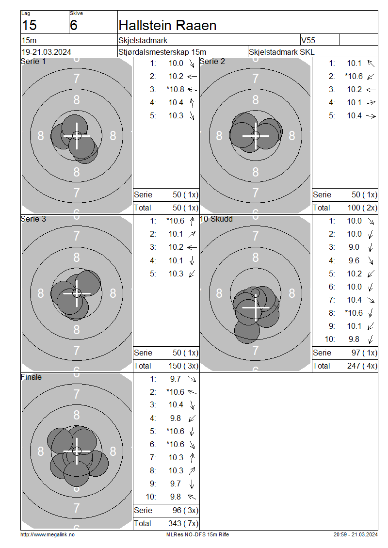| 15 Skudd | 150 | 25 Skudd | 247 | 35 Skudd | 343 | ||||||||||||||||||||||||||||||||||||||||||
