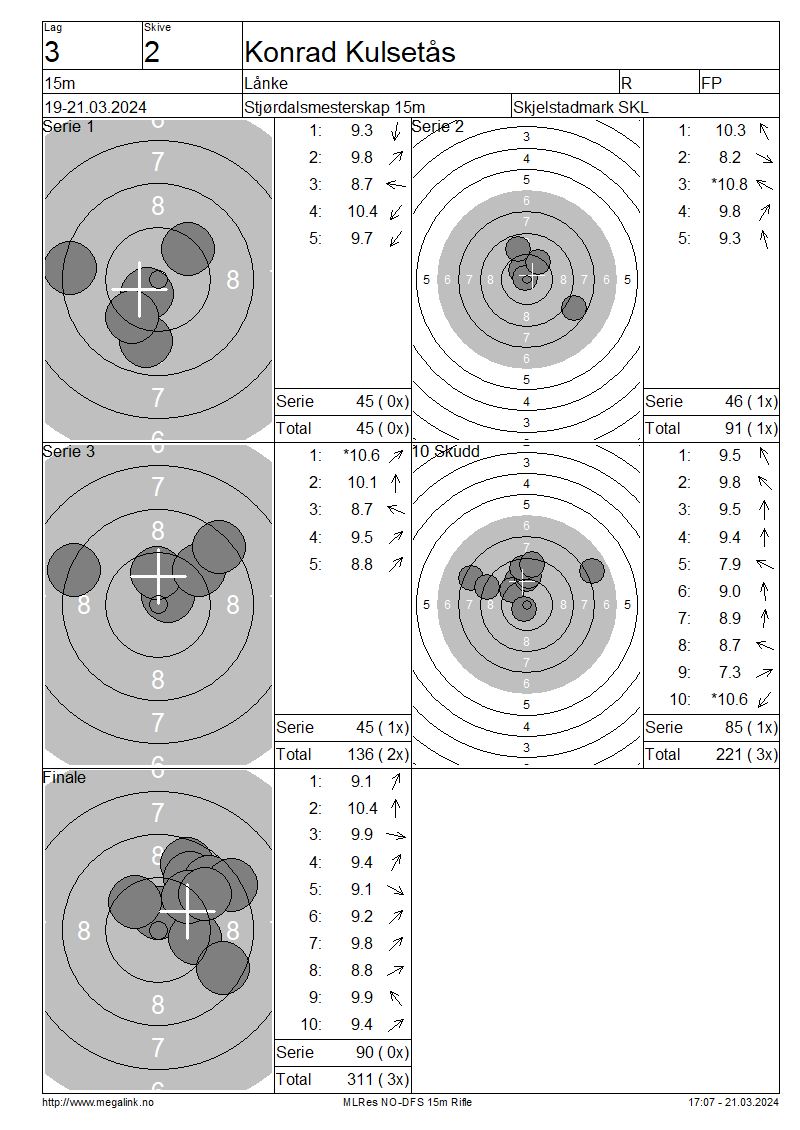 15 Skudd | 136 | 25 Skudd | 221 | 35 Skudd | 311 | ||||||||||||||||||||||||||||||||||||||||||