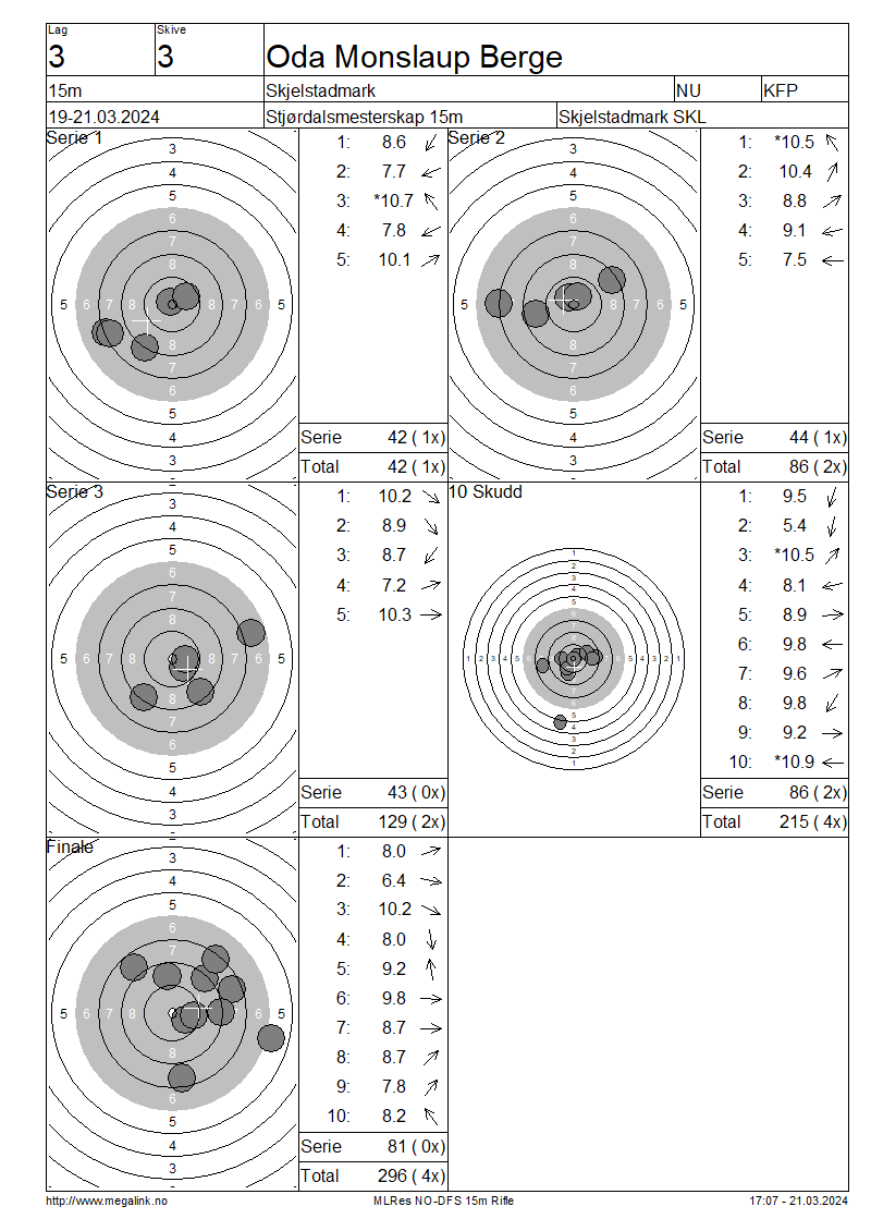 15 Skudd | 129 | 25 Skudd | 215 | 35 Skudd | 296 | ||||||||||||||||||||||||||||||||||||||||||